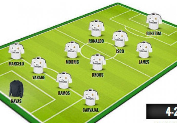 Navas – Carvajal, Ramos, Varane, Marcelo – Kroos, Modrić, – James, Isco, Ronaldo – Benzema