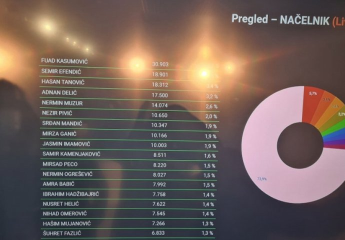 Na prvom mjestu je Fuad Kasumović s 30.903 glasa, a drugi je Semir Efendić s 18.901.