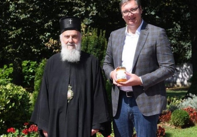 "Čast mi je bila što sam Vas poznavao. Takvi kao Vi nikada ne odlaze...", napisao je Vučić u fotografiju patrijarha Irineja.