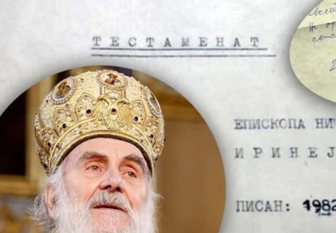 - Ja Irinej Gavrilović kao smrtni čovjek smatram za dužnost da ovim svojeručnim pisanim testamentom, dok sam u dobrom zdravlju i pri čistoj svijesti, iskažem svoju posljednju volju, kako se ima poslije moje smrti postupiti mojom imovinom - napisao je počivši patrijarh u vrijeme dok je bio episkop niški.