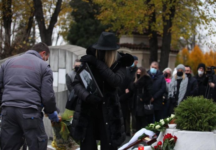 Ona je u rukama držala crno-bijelu fotografiju glumca, a na grob je spustila buket crvenih ruža.