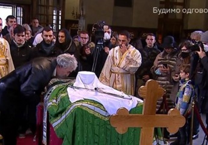 Ljudi u Beogradu masovno ljube staklo, ne daju im da ljube Irinejevo tijelo