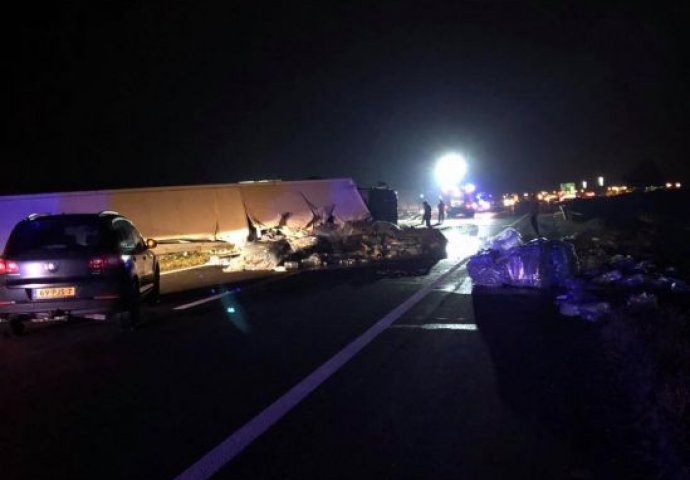 Kamion se prevrnuo na saobraćajnu traku u suprotnom smjeru, a na njegovu prikolicu su naletjela dva automobila koja su vozila prema Zagrebu.