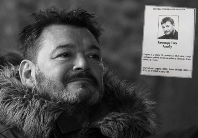 "Posljednji pozdrav našem najdražem Tihomiru Tiki Arsiću. Sahrana je u subotu, 12. decembra u 14.30 sati u Aleji zaslužnih građana na Novom groblju u Beogradu. Opelo počinje u 14 sati. Ožalošćeni: supruga Jelena, ćerke Milica, Lenka i Vera, sin Arsenije i unuka Noa".