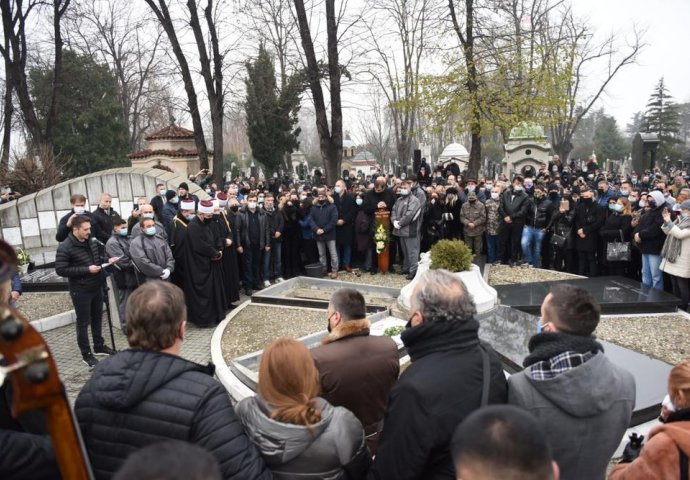 "Draga porodico, danas se opraštamo od oca, prijatelja, našeg brata, velikog pjevača, velikog čovjeka... Ceo tvoj Dorćol je tužan, ne može se skriti. Pamtio se neimaštinu, ali i velika iskušenja si imao, i uspio da se izboriš za parče neba, sada si najsjajnija zvijezda", dio je govora: