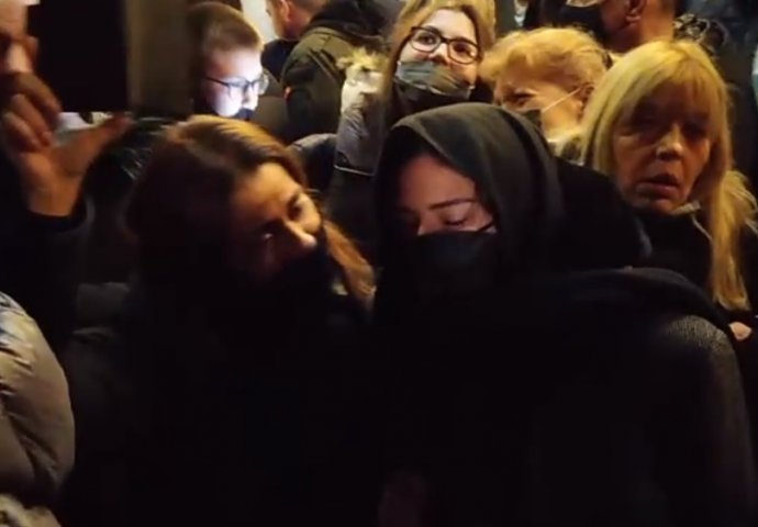 U jednom trenutku su se zagrlile pa zajedno jecale, a okruživalo ih je more ljudi koji su došli da se oproste od Džeja.