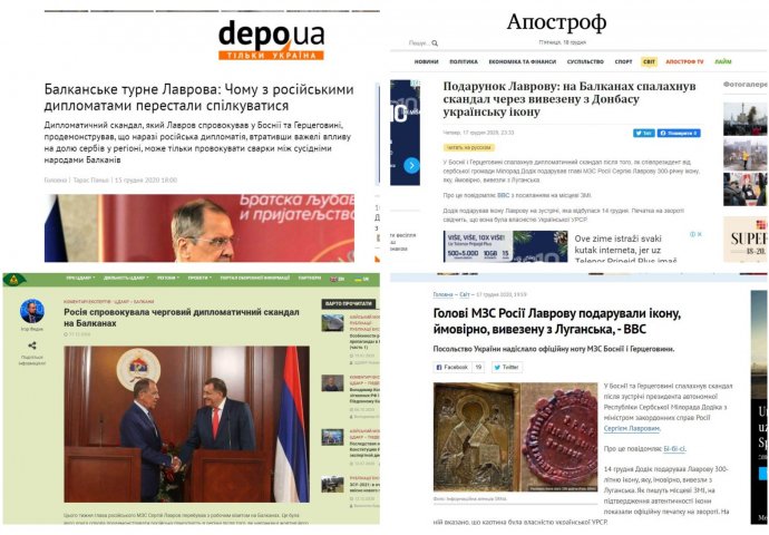 Ukrajinski mediji danas bruje o "skandalu na Balkanu" a tiče se pravoslavne ikone koju je predsjedavajući Predsjedništva Bosne i Hercegovine Milorad Dodik poklonio ruskom ministru vanjskih poslova Sergeju Lavrovu, tvrdeći da je skandal izazvala ruska strana.