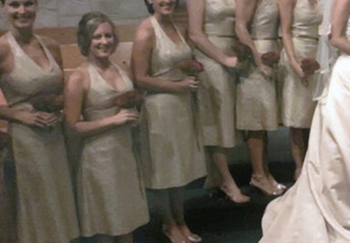 Na pažljivo planiranoj fotografiji, koja bi, kaže, lokepo izgledala da je fotograf znao šta radi, ideja je bila da sa jedne strane stoje mlada i djeveruše, a sa druge mladoženja i prijatelji.