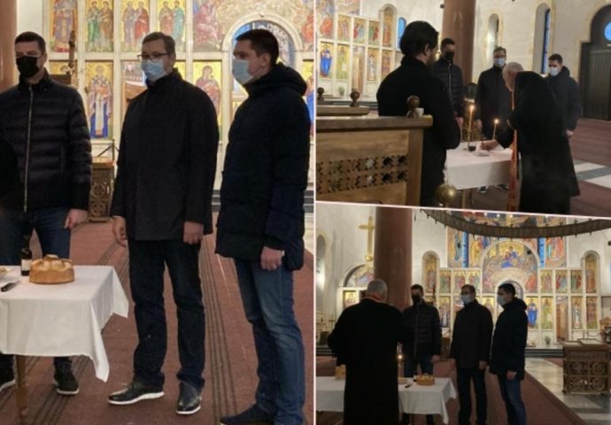 Predsjednik je sa bratom Andrejem i starijim sinom Danilom jutros u 7.15 bio u Crkvi Svetog Marka, u centru Beograda.