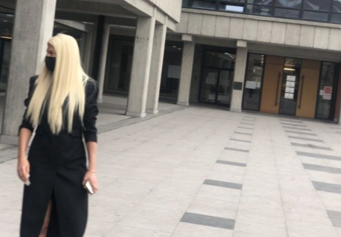Karleuša je stigla oko podne u Palatu pravde odjevena sva u crnom i sa maskom na licu u tonu sa haljinom koja je imala neprilično dubok izrez.