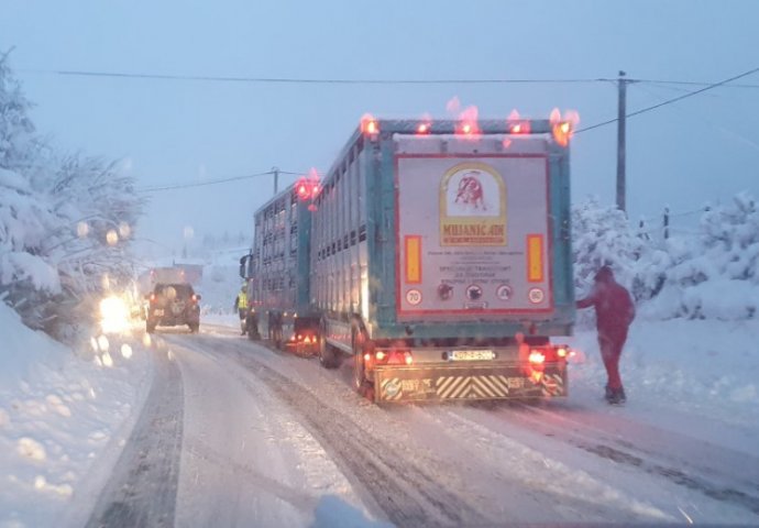KAMIONI ZAGLAVLJENI, SNIJEG IZAZVAO SAOBRĆAJNI KOLAPS, haos u ovom dijelu BiH: Stigla i policija