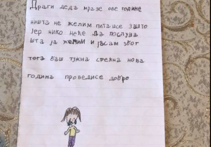 TEA (9) IZ PODGORICE NAPISALA PISMO DJEDA MRAZU, DJEVOJČICA U SUZAMA, OVO JE BILA NJENA ŽELJA: Svi dijele njeno pismo