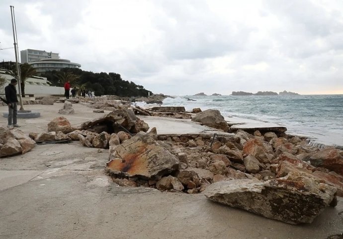 Veliki valovi i vjetar su raznijeli betonsku rivu, izbili kamen i teške komade betona raznosili po ovom dijelu Dubrovnika.
