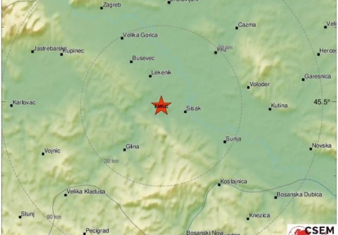 Epicentar je bio 8 kilometara zapadno od Siska, javlja EMSC.