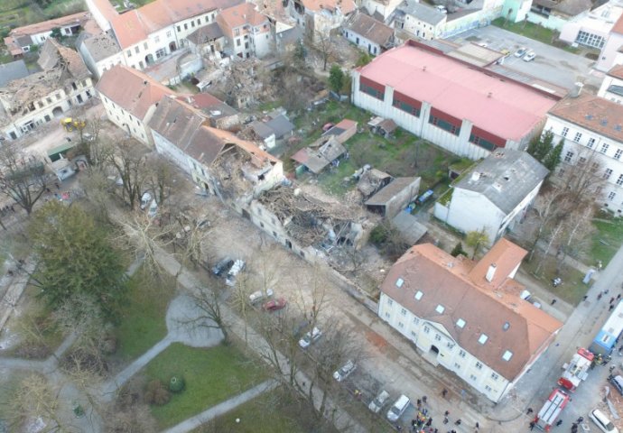 Kako pokazuju snimke Petrinje iz zraka, gradske ulice su pune ruševina, veliki broj objekata je oštećen, a spasioci, pripadnici Hrvatske vojske i obični građani tragaju za preživjelima, piše Jutarnji List.