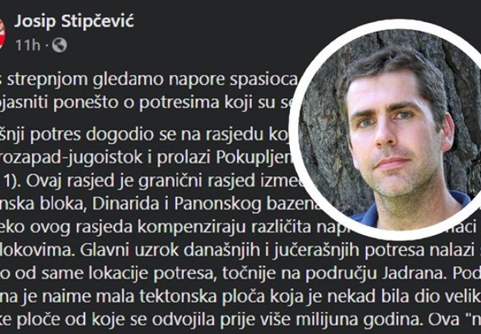 JOSIP STIPČEVIĆ, geofizičar sa zagrebačkog Prirodoslovno-matematičkog fakulteta, sinoć je na Facebooku objavio zanimljiv post o jučerašnjem razornom potresu.