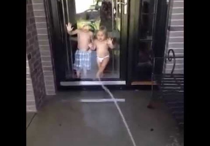 Ova dva mališana su posmatrala šta tata radi vani, ni sanjali nisu da će ih 'zapljusnuti' mlaz vode, iznenada. Ipak, bili su spremni!
