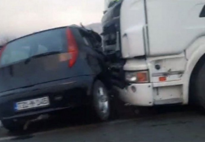 Kamion i putničko vozilo fiat punto sudarili su se danas na magistralnom putu u Vitezu, a potom se automobil zapalio.