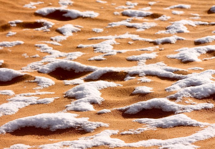 Pustinja Sahara: Rijetke snježne padavine ostavljaju izvanredan uzorak na pješčanim dinama!