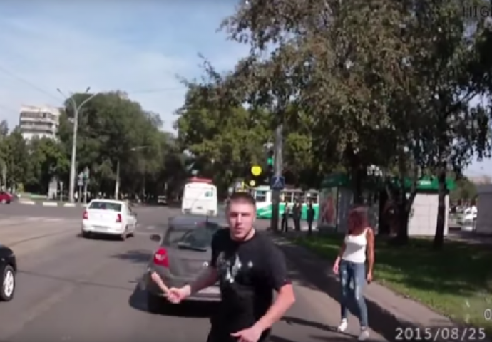 Nervozni i očito lakozapaljivi vozač udarenog vozila demonstrirao je neviđenu agresiju.