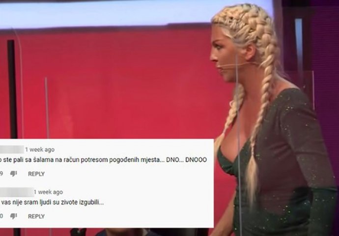 "Ovo što se tiče Petrinje i Siska može vas stid biti", "Znate li koliko je nesreće i koliko je ljudi ostalo bez kuća??? Sram vas bilo, možda i vi budete spavali u kontejnerima", "Kako je Grand produkcija dozvolila ovo sprdanje s potresom u Sisku i Petrinji, sram vas bilo", "Molim vas izbacite Sisak i Petrinju iz ovoga!!! Ljudi su izgubili sve i ne treba ni u šali ni u vicu da se spominje ovako nešto degutantno!!!!!", "Nisko ste pali sa šalama na račun potresom pogođenih mjesta... DNO... DNOOO", "Kako vas nije sram, ljudi su živote izgubili", nizali su se komentari.