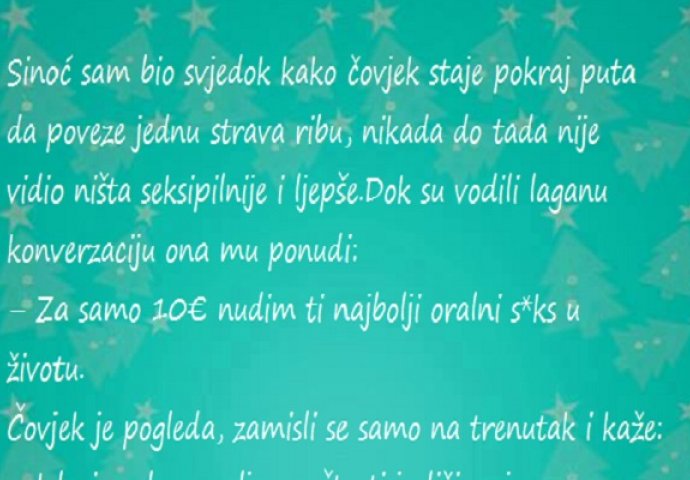 "Ja sam pošten čovjek, domaćin" : Evo u kojem samo slučaju muškarac odbija seks sa prezgodnom ženom! Zanimljivosti 31.08.15. 12:31 Sinoć sam bio svjedok kako čovjek staje pokraj puta da poveze jednu strava ribu...