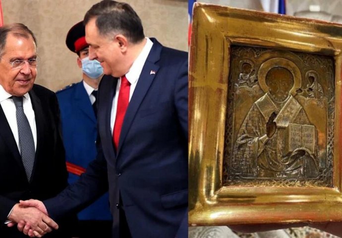 Radi se o pravoslavnoj ikoni sv. Nikole koju je predsjedavajući Predsjedništva BiH Milorad Dodik poklonio ministru vanjskih poslova Ruske Federacije Sergeju Lavrovu, prilikom njegove posjete Bosni i Hercegovini 14. decembra prošle godine.