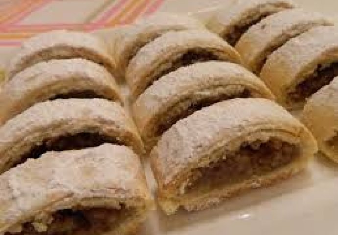 1. Promiješajte brašno sa soli, orasima, praškom za pecivo i cimetom. Dodajte mu razmućeno jaje, šećer i ulje ili maslac, pa od sastojaka umiješajte tijesto. Omotajte ga folijom i stavite na hlađenje.