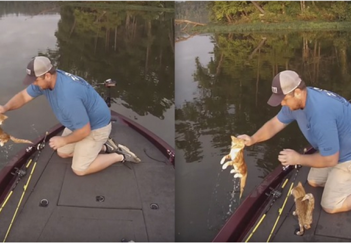 Dvojicu ribara u Alabami iznenadila su dva mačića koja su doplivala do njihovog čamca.