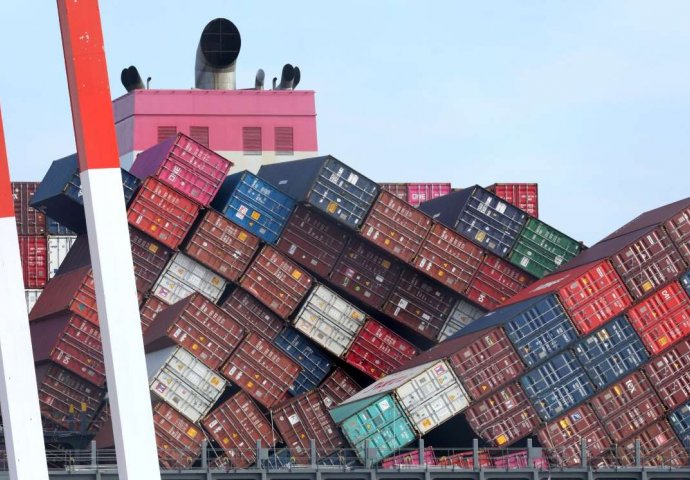 Još jedan brod u Tihom okeanu prelijeva kontejnere u brod!