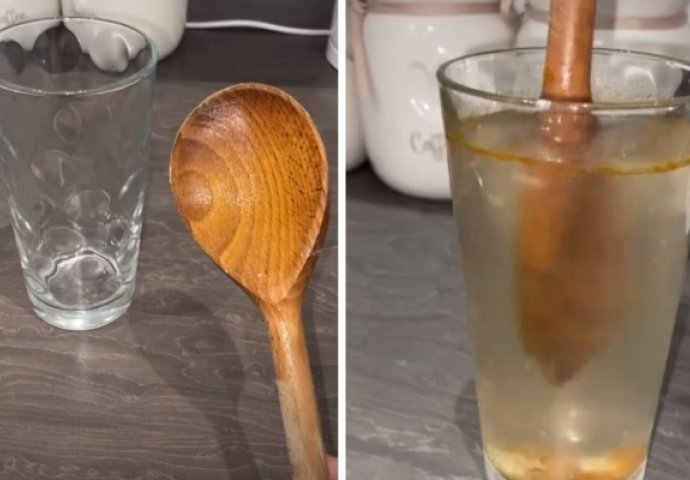 Stavila je drvenu kuhaču u staklenu čašu koju je potom napunila kipućom vodom. Nakon pola sata provjerila je stanje i zgrozila se. Naime, voda je bila mutna, a uokolo su plutali stari ostaci hrane.