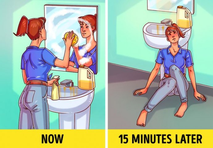 Nikada nemojte istodobno koristiti bjelilo s ostalim deterdžentima na bazi amonijaka u istoj sobi. Smjesa plinova stvara otrovni plin kloramin koji može uzrokovati neke neugodne simptome, au nekim je slučajevima čak i opasan za vaše zdravlje. Amonijak se često nalazi u deterdžentima za prozore i ogledala.