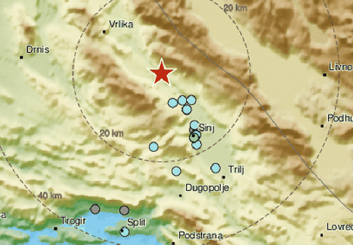 Do potresa je došlo oko 16 sati i 20 minuta na području Dalmatinske zagore, nekih 35 kilometara sjeverno od Splita, a prve procjene kažu 2,5 po Richteru
