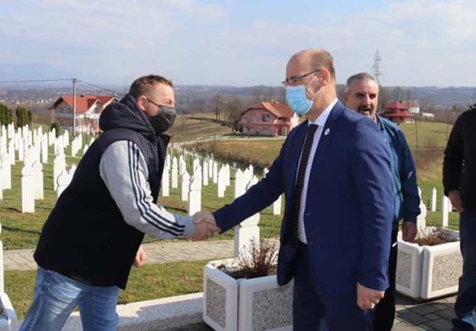 Obišao je Memorijalni centar u Čarakovo, gdje je održan i historijski čas, nakon čega je položio cvijeće i odao počast šehidima ovog mjesta.