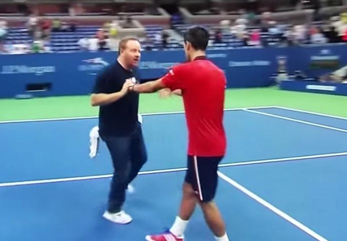 Rasplesani navijač je poslije "ludog" plesa zagrlio Đokovića i poklonio mu majicu sa natpisom "I love NY".