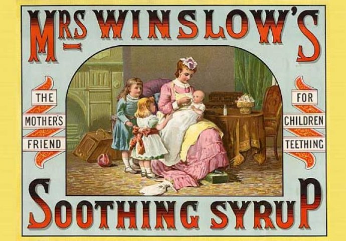 Umirujući sirup gospođe N. Charlotte Winslow počeo je sa prodajom 1849. godine. Sirup je bio koktel nekoliko supstanci: relativno bezopasnih natrij karbonata i aqua amonijaka, kao i jako opasnog morfina.