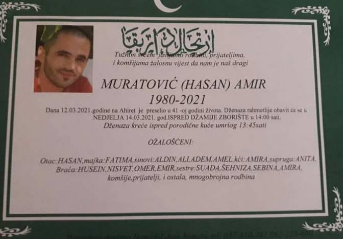 Dženaza rahmetlije obavit će se u nedjelju 14.03.2021. godine ispred džamije Zborište u 14:00 sati.