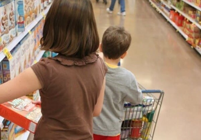 'Jedna baka stoji pred kasom velike samoposluge, u redu da plati.