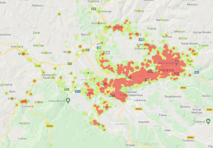 OBLAVLJENA LIVE MAPA ZARAŽENIH: Skoro cijelo Sarajevo označeno crvenom, pogledajte stanje u svom naselju