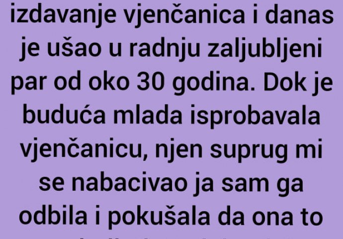 "Radim u jednoj radnji za izdavanje vjenčanica"