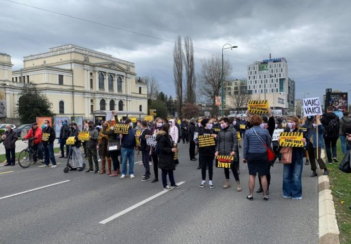 Građani Sarajeva blokirali su glavnu saobraćajnicu kod Parlamenta Bosne i Hercegovine u okviru protesta "Borba za život". Kreću se s porukama: "Zaradite platu", "PCR test obavezan za sve koji ulaze u BiH", "Dosta je", "Spavate li mirno"...