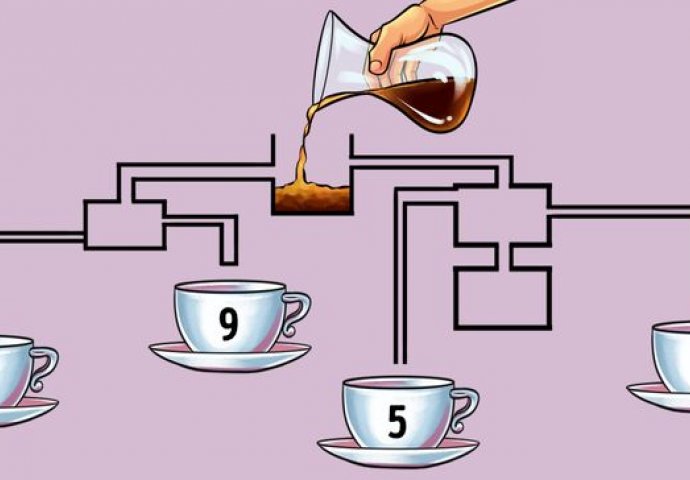 Prvo najprije pogledajte ilustraciju. Postoje 4 šalice, svaka označena brojem. Kafa se ulijeva u cijevi lebdeći nad 4 šalice. Koja će šalica prvo dobiti kafu?