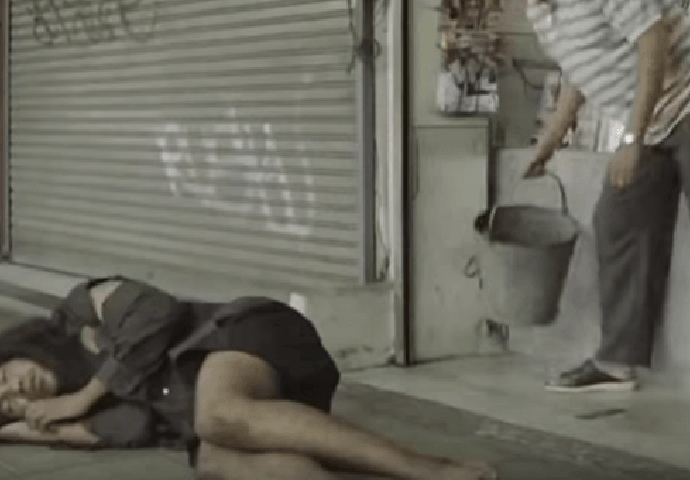 Beskućnik mu je spavao pred radnjom, on ga je svako jutro tjerao, sve dok se jednom više nije uopće pojavljivao.