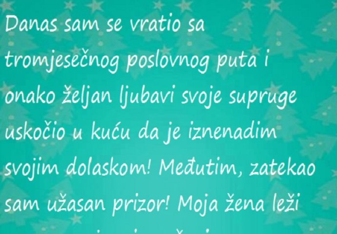 Vratio se s poslovnog puta u želji da iznenadi suprugu, a evo kako je prizor zatekao! Zanimljivosti 08.09.15. 12:57 Da li da joj vjeruje?