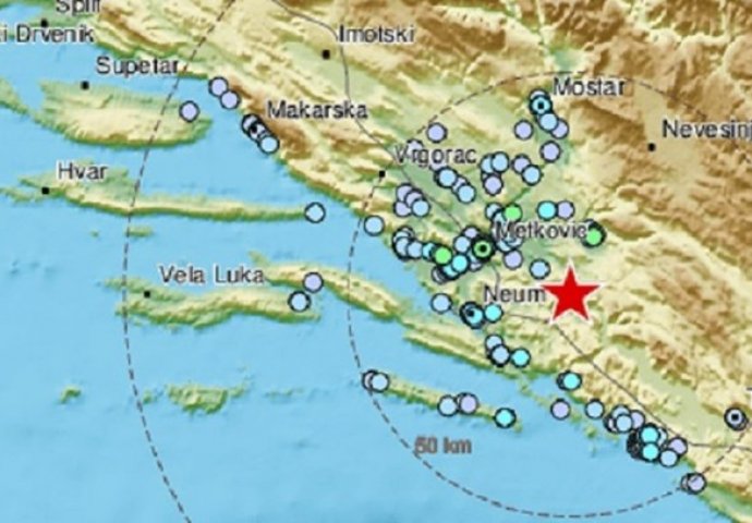 Epicentar potresa je na samoj granici, 20-ak kilometara od Metkovića.