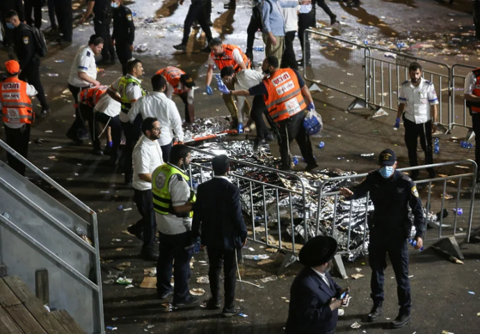 Tokom obilježavanje velike jevrejske svetkovine na sjeveru Izraela, usljed izbijanja masovne panike, smrtno je stradalo više desetina vjernika. Spasilačke službe i bolnice izvještavaju o najmanje 44 smrtna slučaja. Više od 100 ljudi je povrijeđeno, od kojih su mnogi zadobili povrede opasne po život.