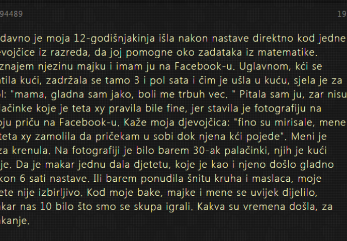 "Nedavno je moja 12-godišnjakinja išla nakon nastave direktno kod jedne djevojčice"