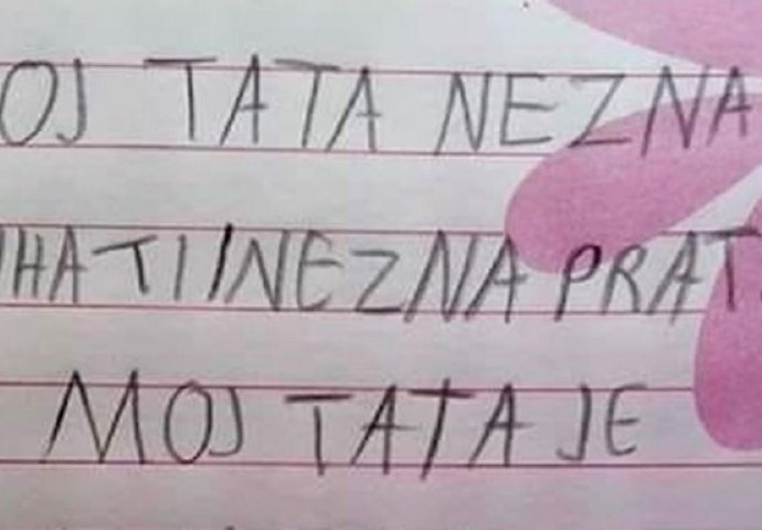DJEČAK JE U ŠKOLI OTKRIO TATINU NAJVEĆU TAJNU: Napisao je sastav, A ZADNJA REČENICA SVE NASMIJALA DO SUZA, OVO JE HIT Kiosk 12.05.21. 20:06 . Njegov tata možda ne za kuhati i prati, ali njemu je ionako najbitnije to što navija za njegov omiljeni klub. Pogledajte sastav koji je nasmijao korisnike društvenih mreža.