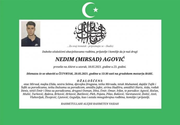 Tužna vijest: Preminuo 23-godišnji Nedim Agović
