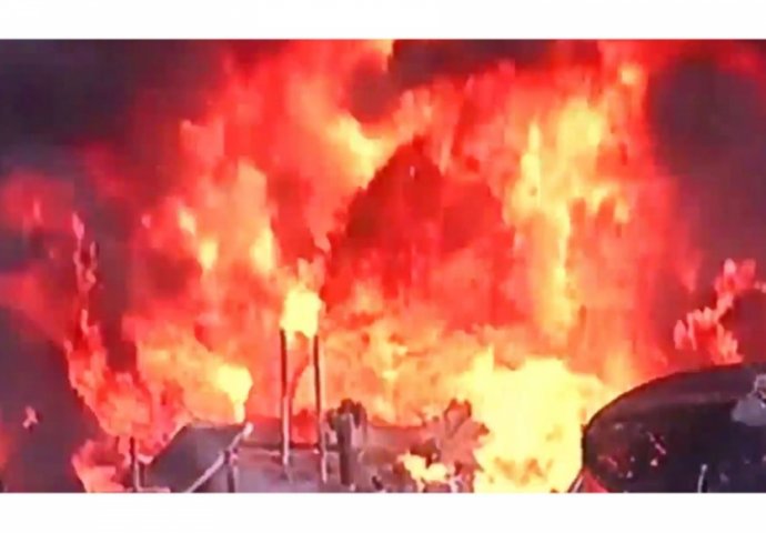 Kako prenosi Russia Today, burad su letjela kroz vazduh kao projektili, a plamen je doveo do stvaranja vatrenih lopti. Kilometrima daleko mogu se vidjeti oblaci crnog dima, kako se dižu u vazduh. Kroz to područje obustavljeni su i avionski letovi, ističe RT.
